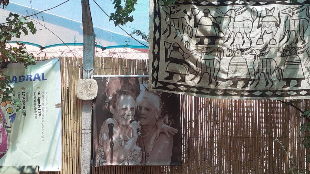 La charla siguió, por momentos se sumaban otros compañeros de este patio luminoso de chaya, con perfumes a albahaca y hoja de coca que saborean desde antiguos tiempos los habitantes andinos. Pasa el anfitrión, Pancho Cabral y suelta, “no pueden hablar ustedes che” (la ironía lanzada con sonrisa) … Es que llevamos cerca de 2 horas en este tablón, una mesa bien servida, sencilla pero rica, asado, empanadas y vinos. Los sonidos de la chaya son contra la tristeza, y la alegría de encontrarnos.