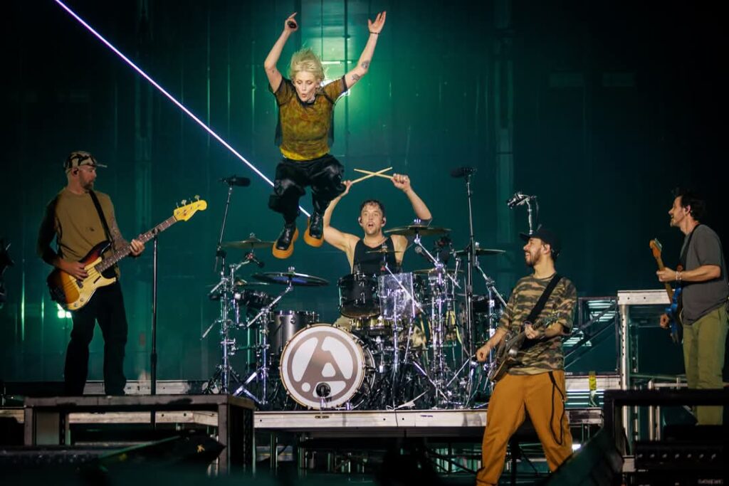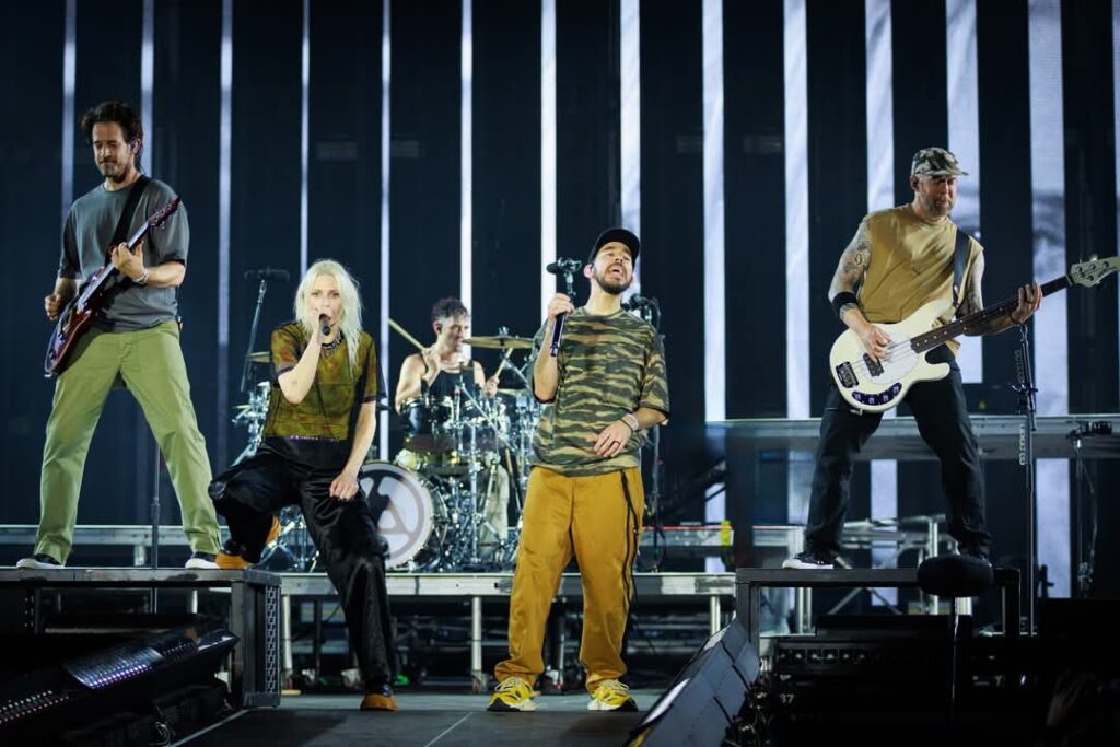 La secuencia continuó con “Overflow”, “Numb”, “In the End” donde la multitud se unió en un canto masivo, creando un momento trascendental que quedará grabado en la memoria de todos. “Faint” y “Papercut” llevaron la energía a un nuevo nivel, y el cierre con “From The Inside” otra de las rolas que no habían sido interpretadas en fechas de México y