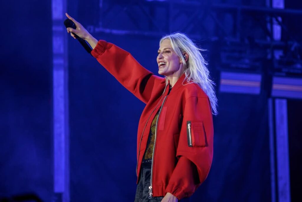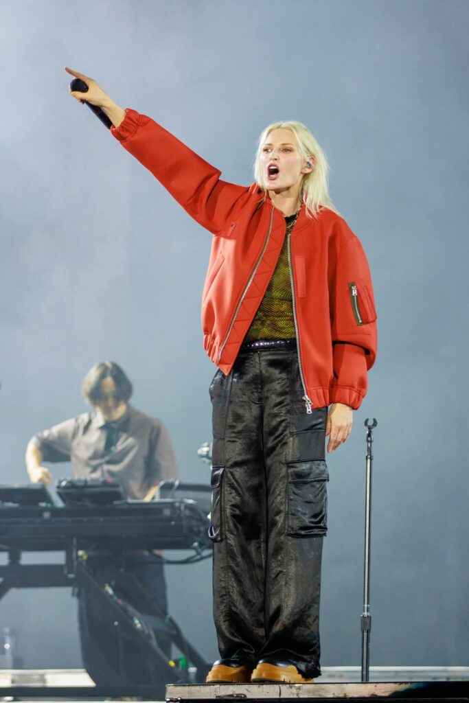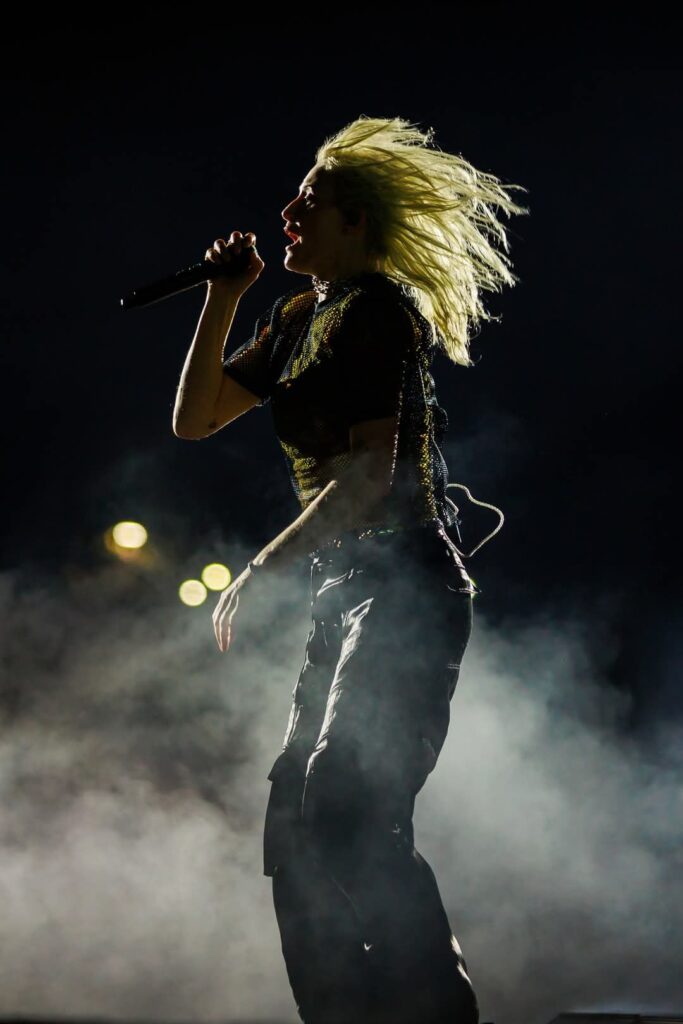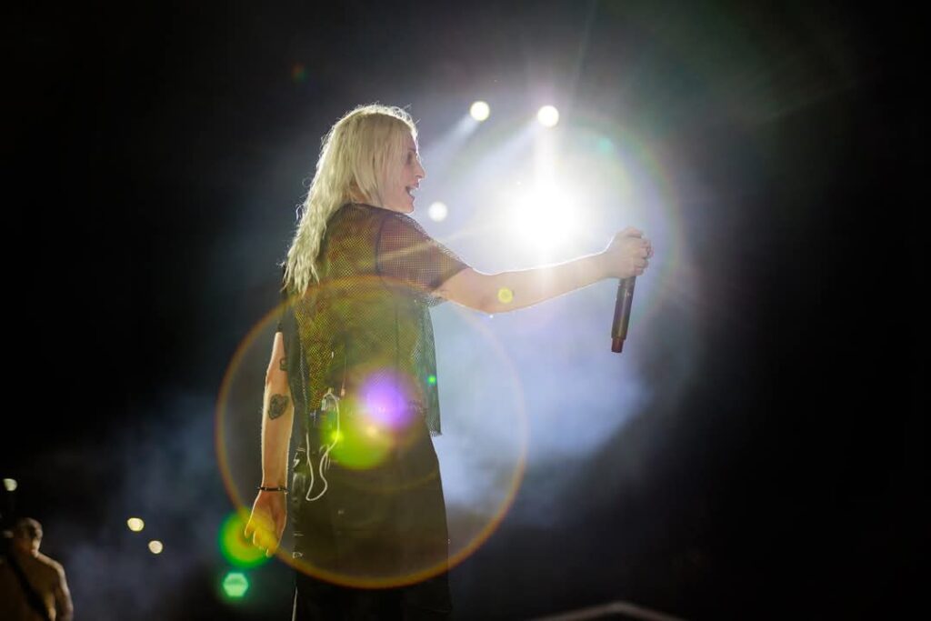 Cada uno en sus lugares, congregados en el estadio, a la expectativa. Se apagan las luces y la primera llamarada de nostalgia nos quema de golpe y de frente. Mezcolanza generacional que arranca con “Somewhere I Belong” canción que consigue hacer vibrar de forma descomunal cada ínfimo rincón del estadio. El piso se mueve. Retumba. Emily Armstron a cada nota resuena con aires de nostalgia y frescura. Tiene una mirada radiante, profunda y violenta, una ligera sonrisa que en ratos se tuerce, y a la par del levísimo pero evidente nerviosismo, le hacen lucir encantadora y a su vez poderosa. Consigue una inmediata conexión con el público que esperó toda una década para poder asistir a un concierto de Linkin Park en vivo.