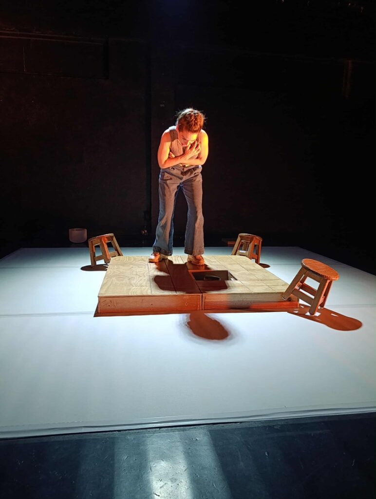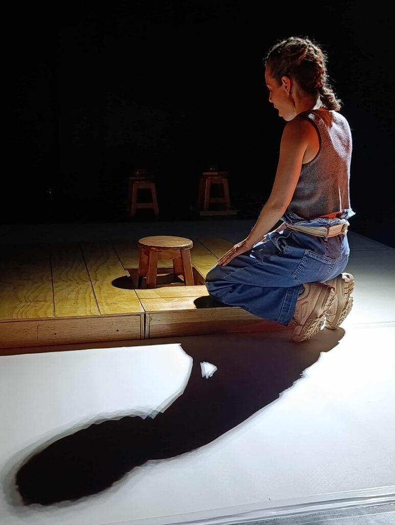 La puesta en escena, a pesar de ser un trabajo unipersonal, cuenta el trabajo de un gran equipo. Desde la puesta en escena dirigida por Arrevillaga que logra sacar lo mejor de la actriz-autora en un espacio limitado con la sutil y correcta iluminación artística de Aurelio Palomino que ayuda a desplegar y proyectar la capacidad histriónica de Leal.