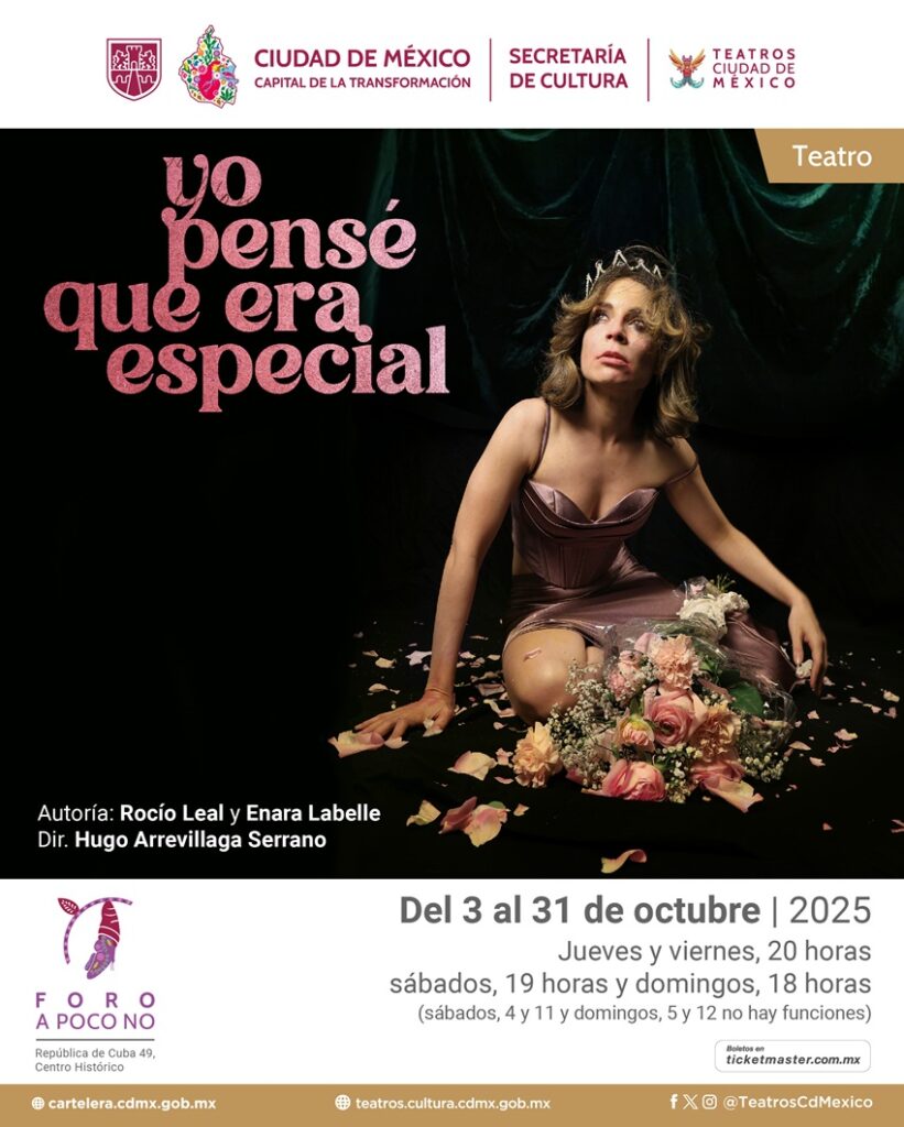 Yo pensé que era especial, se presenta en el Foro A poco no de la CDMX, jueves y viernes a las 20:00, sábado a las 19:00 y domingo a las 18:00 horas hasta el 31 de octubre. Los boletos están disponibles en Ticketmaster o en la taquilla del teatro. Hay descuentos para maestros y estudiantes e Inapam. Es posible que puedan conseguir descuentos a través de las redes sociales del teatro.